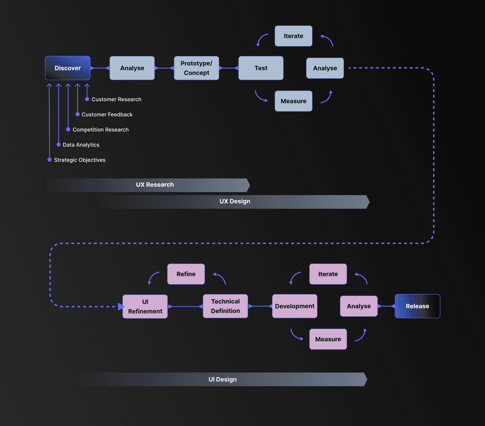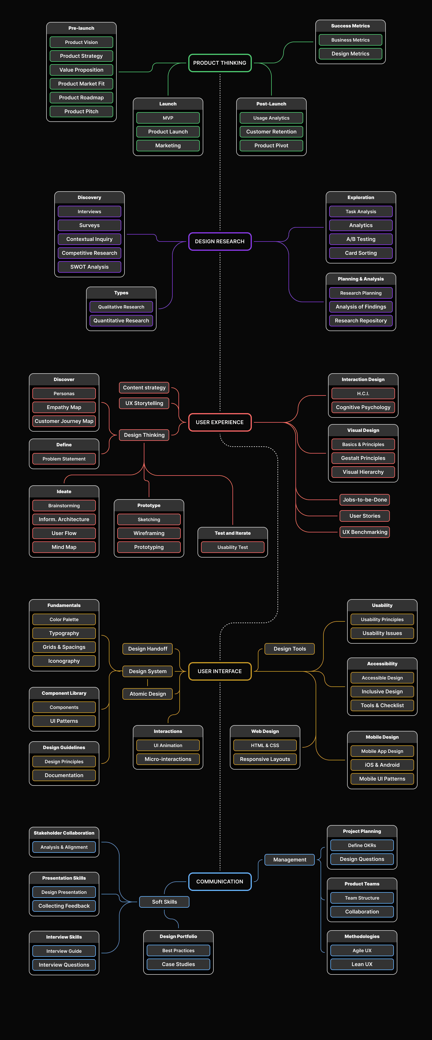 As a Senior Product Designer, being familiar and comfortable with all aspects of the working process is important to contributing to the highest level. There are a lot of responsibilities. One moment you might be zoomed in to pixel level, and the next you might be zoomed out to a a macro strategic level. There are a huge range of potential inputs and outputs that contribute to a product's success.