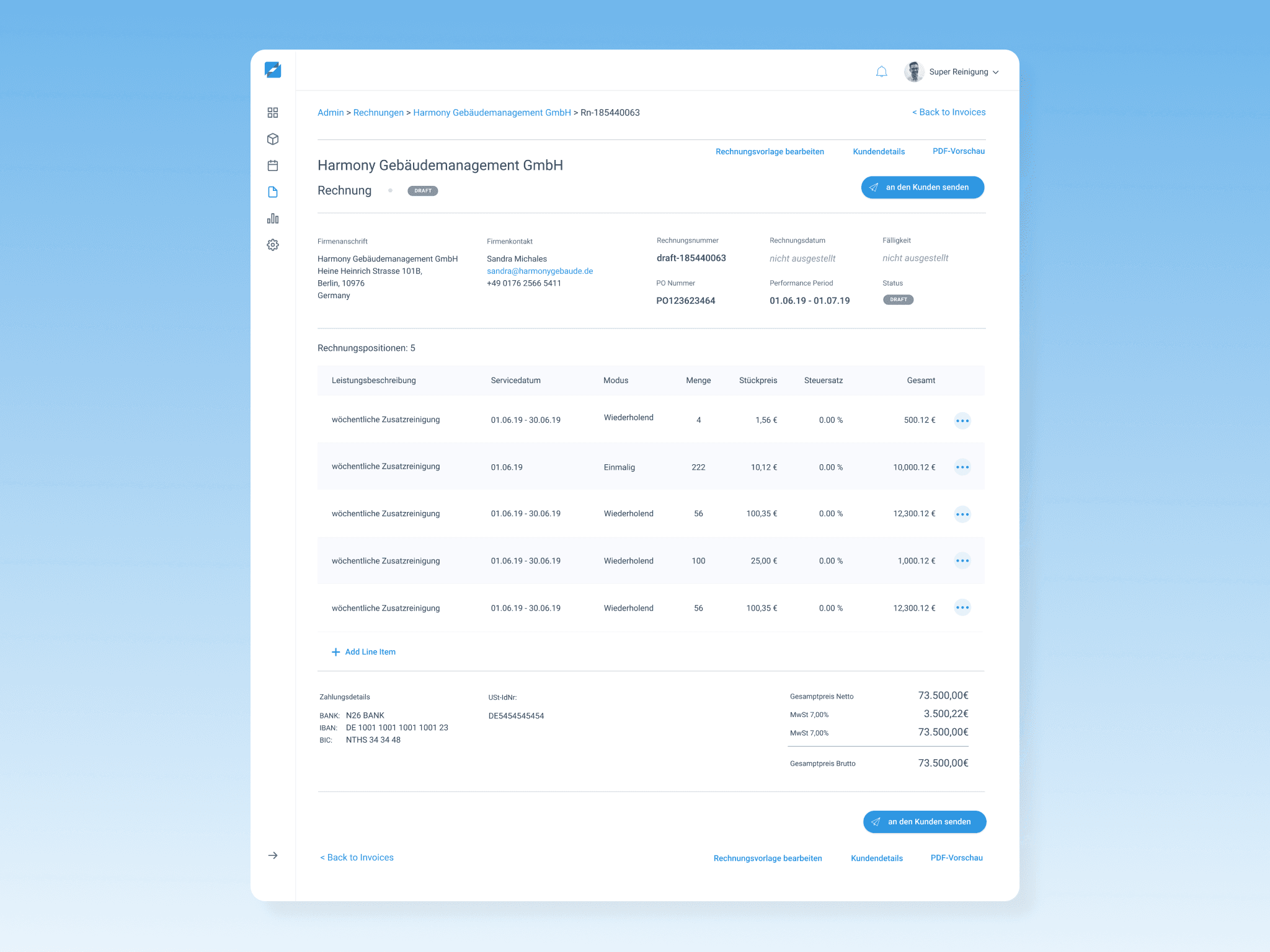 Balancing the diverse needs of cleaning companies and facilities management firms within one interface and ensuring rapid design iterations in an agile environment were key challenges.